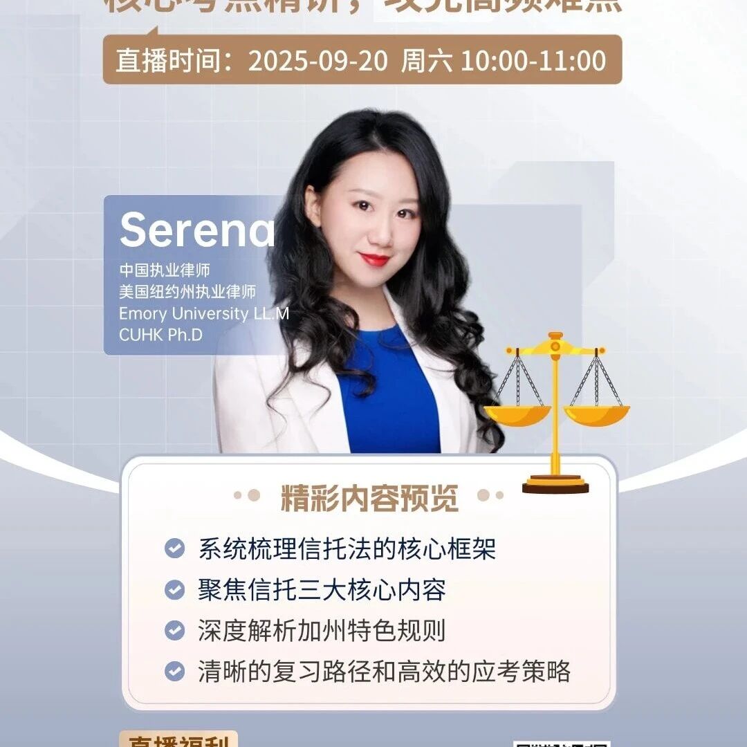 加州律考信托法(Trusts)核心考点精讲,攻克高频难点😁适合人群:1.计划备考2026年2月份美国律考的考生2.对涉外律师考试感兴趣或者有一定了解3.希望扩大职业交流平台和拥有国际视野的法