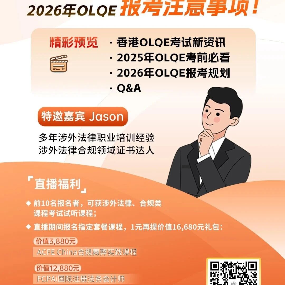 OLQE考试即将开考!2025年OLQE考前必看!2026年OLQE报考注意事项规划!😁适合人群:1、海外执业律师:已经在其他国家或地区取得律师资格,计划在香港从事法律工作或拓展职业领域的律