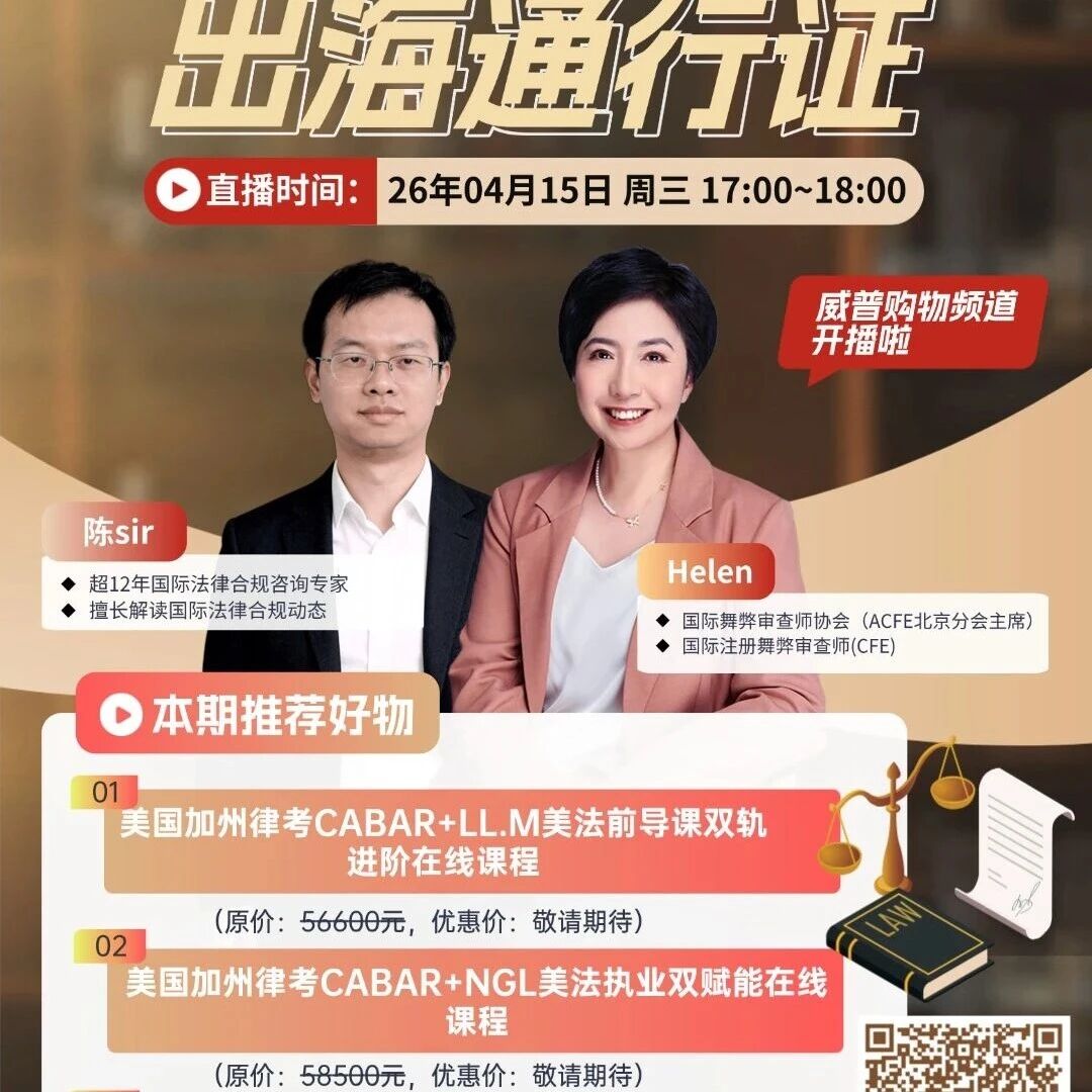 想做跨境法律业务,却不知道从哪下手?证书、合规、财税问题一团乱麻?别慌!这场直播直接把「出海通行证」送到你面前\n\n直播期间专属优惠价,比原价省出大几千!还赠送学习大礼包!\n\n本期核心干货:\n