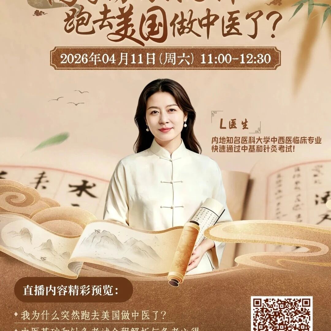 📢无所畏惧:英语一般的我,如何考下美国中医执照?很多人觉得,考美国中医师执照门槛很高,英文不流利、时间不多,就很难开始。但其实,只要找到合适的方法和节奏,也能一步步走到目标。这场直播,讲述一