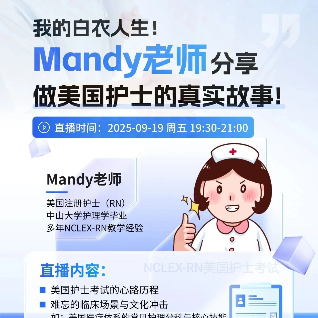 📢我的白衣人生!Mandy老师带大家~走进美国护士的精彩世界!想知道美国护士的职业生活到底是什么样吗⁉想提前了解职业规划和成长机会?Mandy老师将带你一起探索,让你看到护士工作中的亮点与可